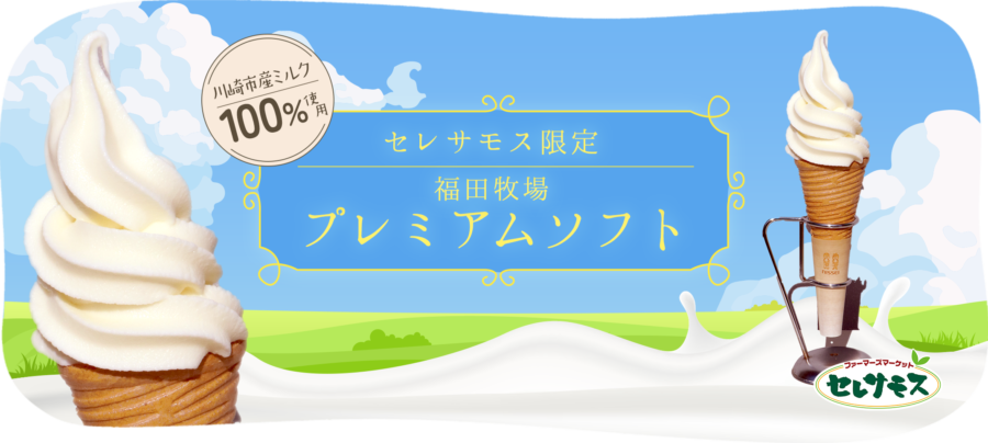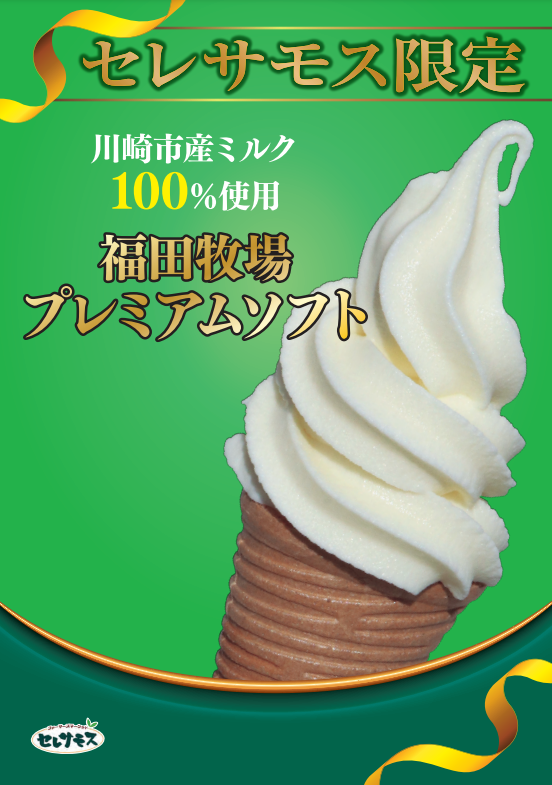 4月6日(土)より、川崎市高津区で市内唯一酪農を営む「福田牧場」の牛のミルクを使用した「福田牧場プレミアムソフト」をセレサモス限定で販売します!
