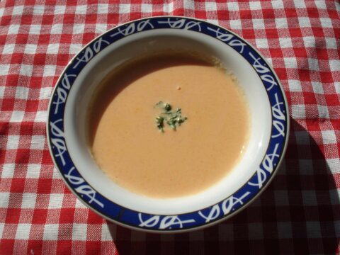 - カップにスープを入れ、最後にパセリを振りかけて出来上がり。
