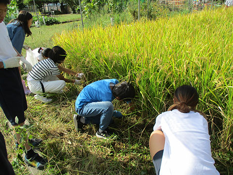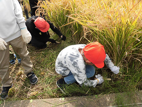 秋には稲も順調に育ち稲刈りを行うことができ、黄金色の稲穂を見て児童たちは立派なお米ができた喜びを感じていました。