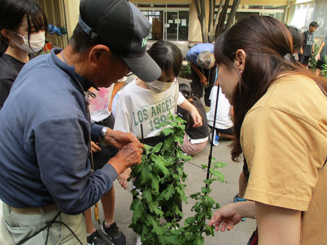 中原地区の名産品である菊栽培を、今年は大戸小学校の5年生と6年生が下小田中菊花会の皆さんの指導のもと体験学習を行いました。