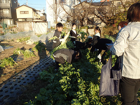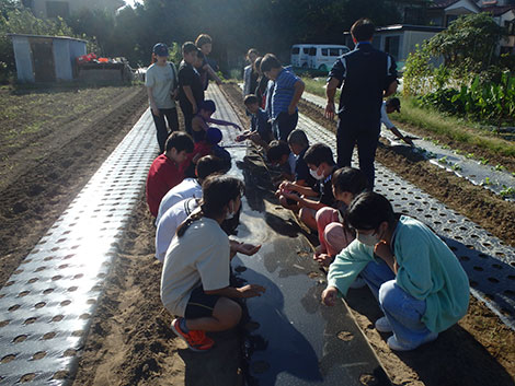 宿河原小学校では給食の食材として使用するダイコンの栽培体験を地元農家協力のもと、行いました。