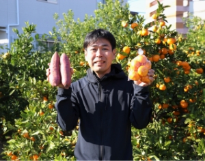 年間40品目ほどの野菜や果樹を栽培しています。適度な酸味を感じるミカンや、今シーズンからは貯蔵なしでも甘いサツマイモ「あまはずき」を出荷しています。春には朝採れの新鮮なアスパラガスをぜひご賞味ください。