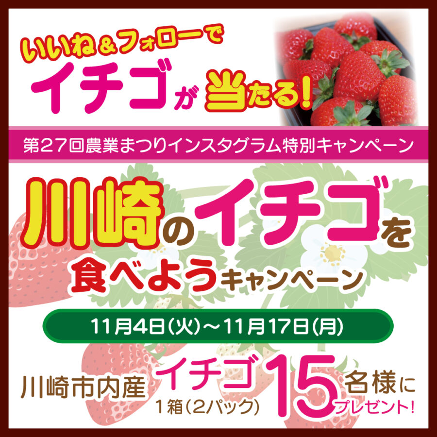 令和7年11月16日(日)に開催する「第27回農業まつり」の全会場統一企画として、今年もインスタグラム限定の特別キャンペーンを実施いたします!