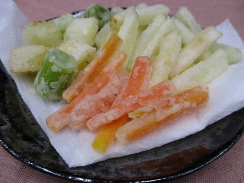 - 強火にして、さらに1~2分揚げ、油を切って器に盛る。
