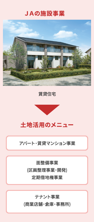 賃貸事業については、建物の引き渡し・事業開始後もJAグループの組織力と技術力に基づき、施主さまの事業支援をお約束します。