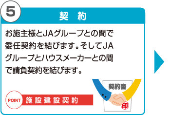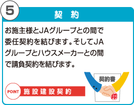 施主さまとJAグループとの間で委任契約を結んでいただき、JAグループが建築業者に工事を発注します。