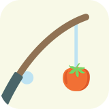 水に浮かんだトマトやイチゴを釣り上げます。