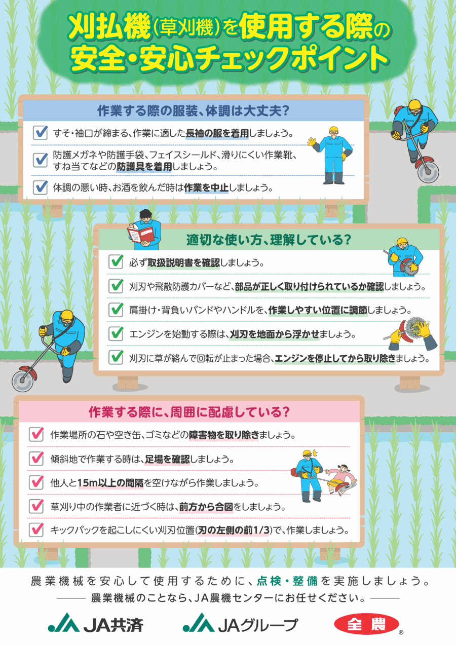 農業用自動車・刈払機(草刈機)の取扱に注意しましょう。